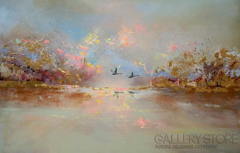 Eliza Kleczewska- Łabędzie w złocie – akryl